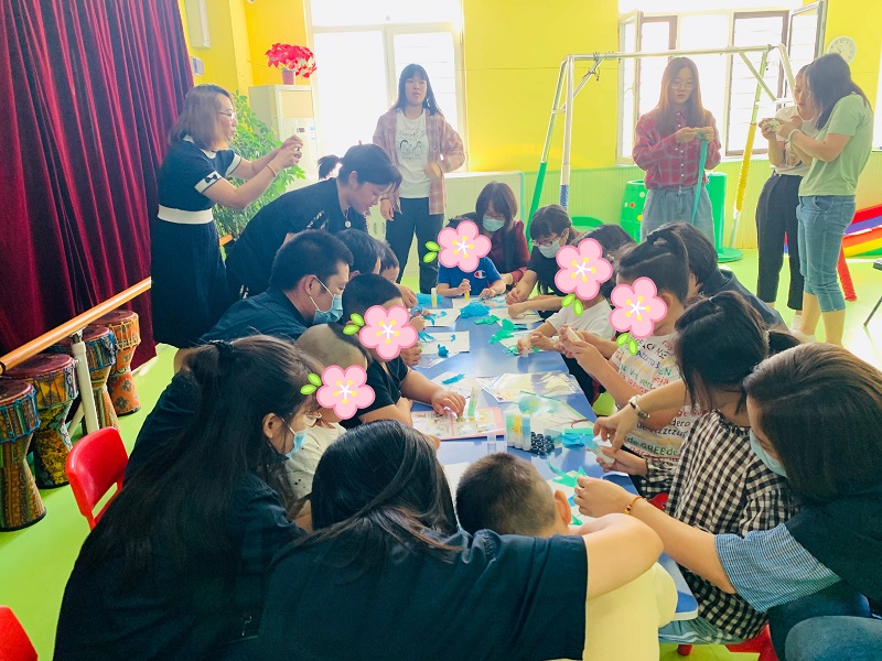 活動現(xiàn)場,愛晶園的劉園長介紹了園內(nèi)特殊教育兒童的基本情況,并帶大家參觀了兒童發(fā)展中心,走訪班級看望孩子們。金橋支部贈送了四套實木桌椅和四大箱兒童教具,用來豐富孩子們的學(xué)習(xí)生活。因為孤獨癥的孩子們需要更多的陪伴,黨員同志們和基金會領(lǐng)導(dǎo)與愛晶園的寶貝們共同制作了創(chuàng)意手工,希望孩子們在愛心的澆灌下,能夠像小樹一樣,更加健康茁壯地成長!