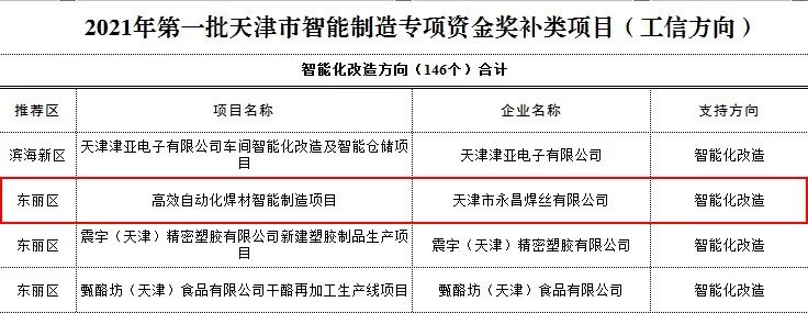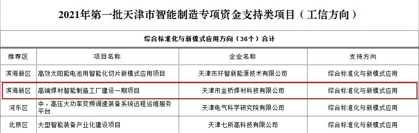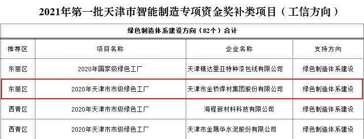 金橋焊材集團(tuán)三項(xiàng)綠色智能方案入選2021年天津市首批智能制造專項(xiàng)資金項(xiàng)目