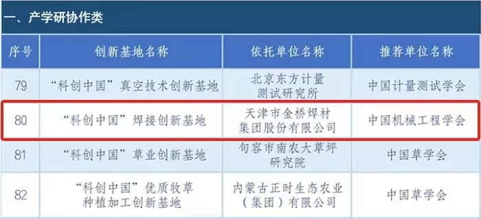 “科創(chuàng)中國”創(chuàng)新基地是中國科協(xié)推動產學研協(xié)同創(chuàng)新和科技成果轉移轉化的合作載體,是“科創(chuàng)中國”各類資源下沉匯聚的承接平臺,旨在促進跨界、跨域、跨境集聚配置創(chuàng)新資源,動員更多人才、技術、數據、資本等創(chuàng)新資源,助力地方經濟高質量發(fā)展。金橋集團憑借良好的創(chuàng)新基地基礎、過硬的產品研發(fā)和科技攻關能力以及出色的產學研落地轉化成果,被認定為“科創(chuàng)中國”焊接創(chuàng)新基地,成為天津四家入選產學研協(xié)作類“科創(chuàng)中國”創(chuàng)新基地的單位之一。