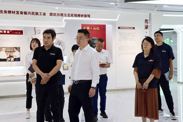 會前,王文雷一行參觀了高速鍍車間、國家級企業(yè)技術中心和金橋記憶展館,對焊材行業(yè)進行深入了解,對金橋集團數字化、智能化、綠色化發(fā)展表示稱贊。