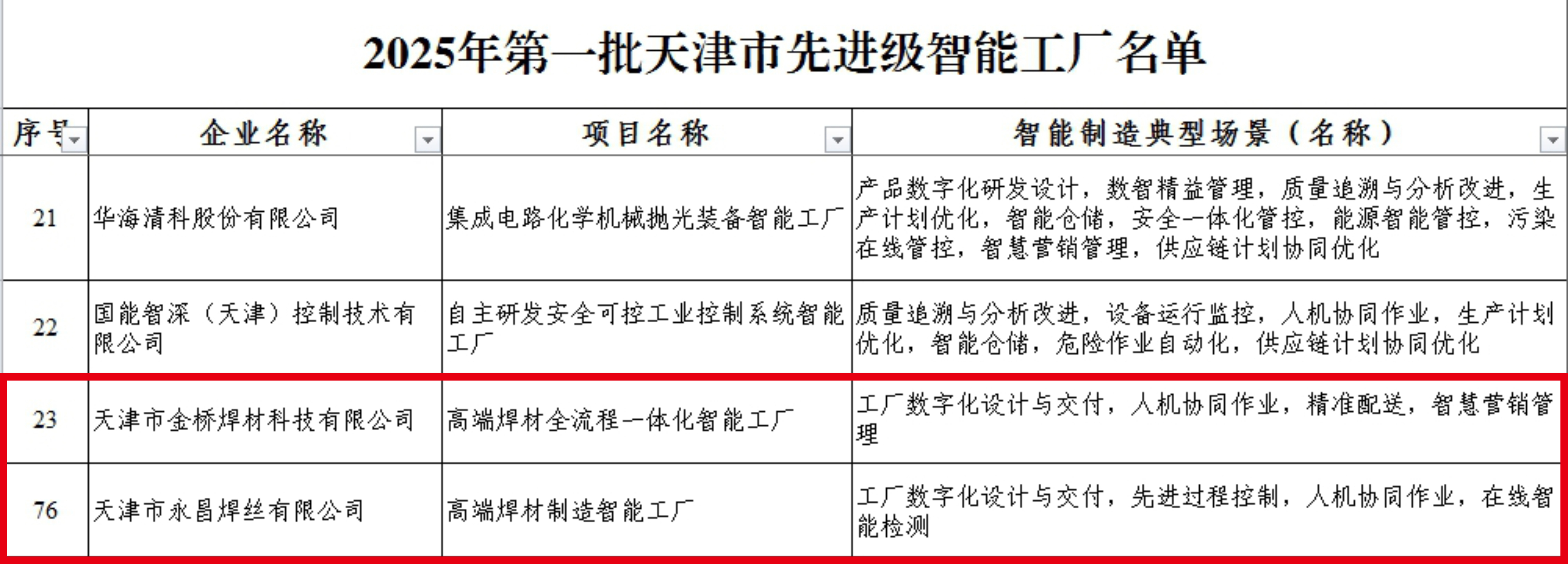 金橋科技公司、永昌焊絲雙雙斬獲天津市首批“先進級智能工廠”認證